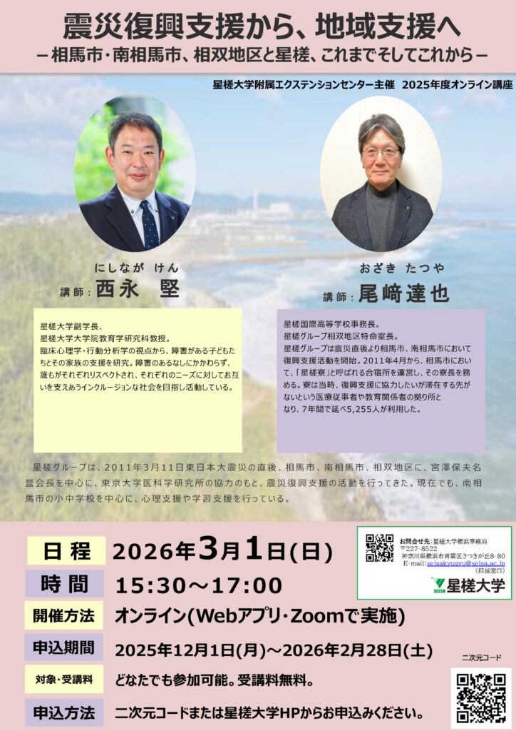 「震災復興支援から、地域支援へ -相馬市・南相馬市、相双地区と星槎、これまでそしてこれから-」